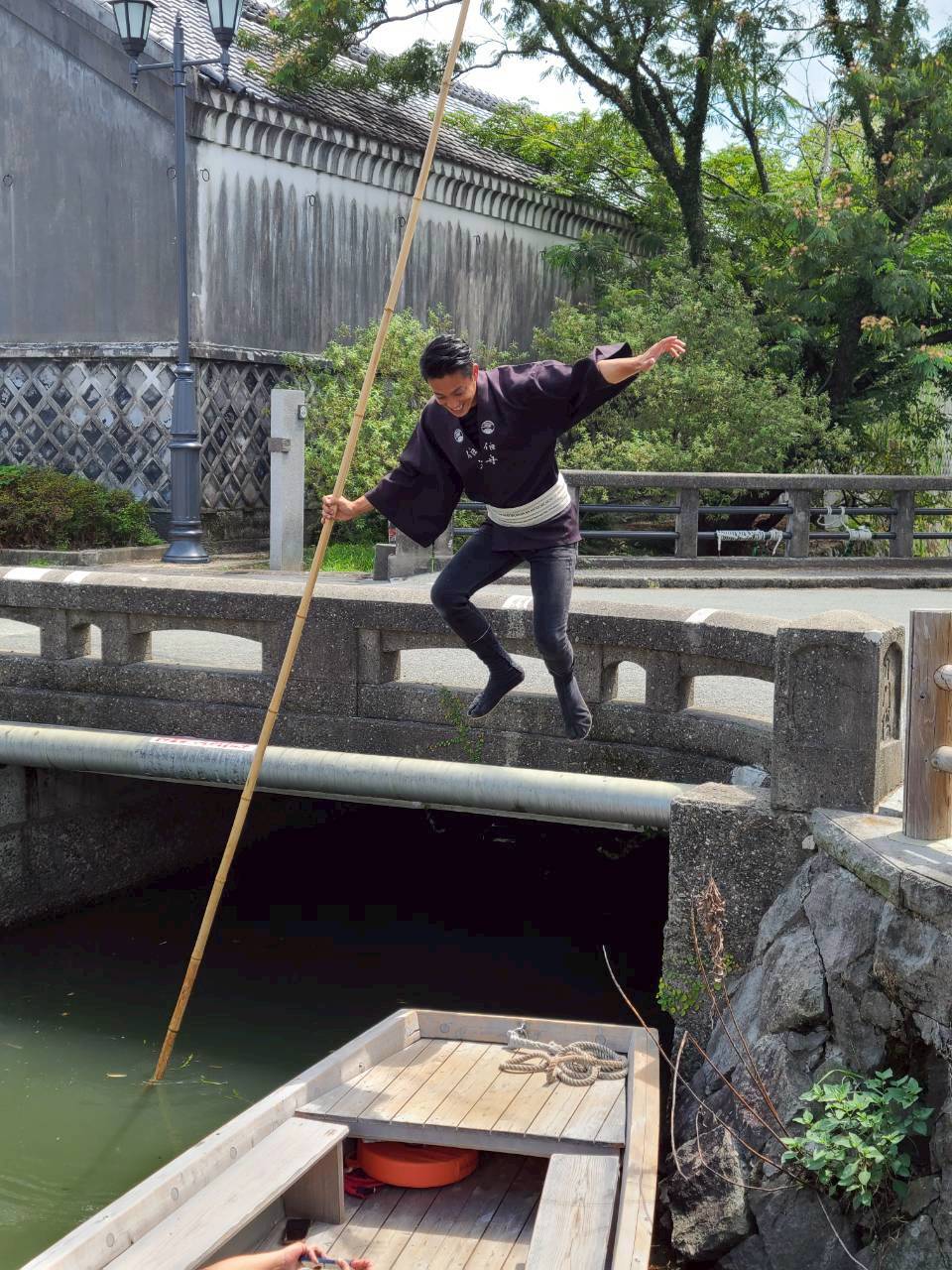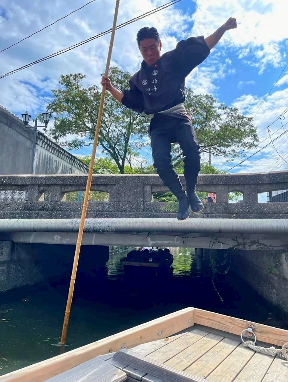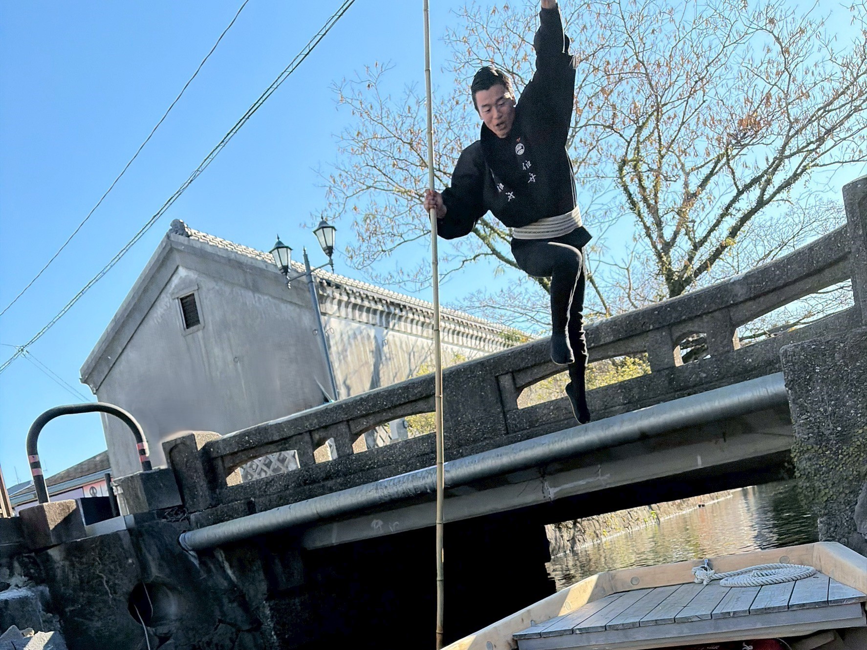 伯舟観光|忍者船頭の橋越えパフォーマンス体験