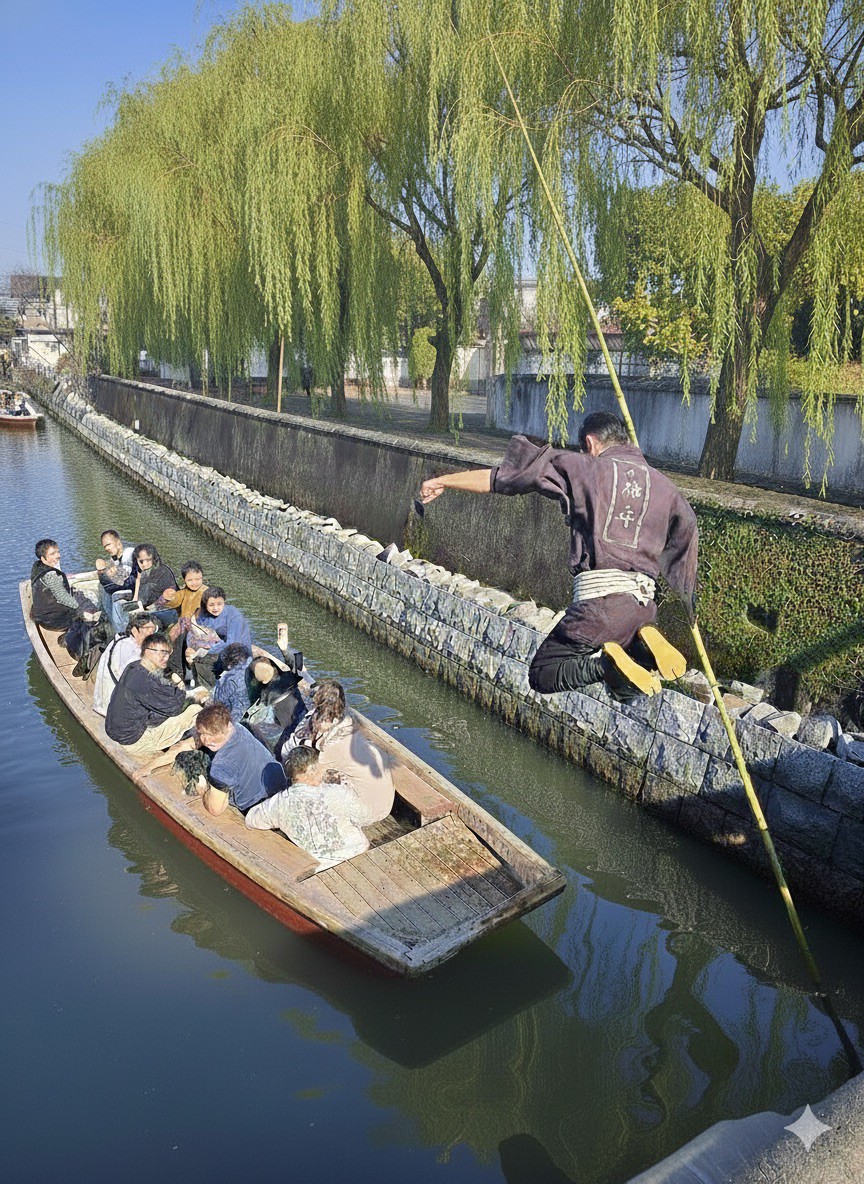 観光船では、川沿いの町並みや歴史的な橋を眺めながら、忍者船頭たちの巧みな技術を体験できます。季節ごとに変わる川の風景や、水面に映る橋の景色は写真映えも抜群です。川下り・観光船体験・忍者ショーなどを楽しみたい方に最適で、お子さまから大人まで、家族や友人と一緒に楽しめるコンテンツが満載です。